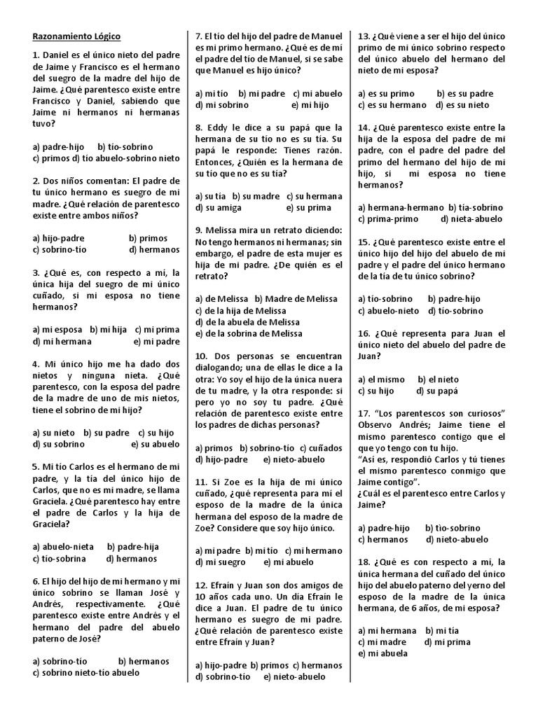 Tus nietos son los de tus hijos 17. El hijo de mi hermano 4. El hijo de mi abuelo que no es mi tío.